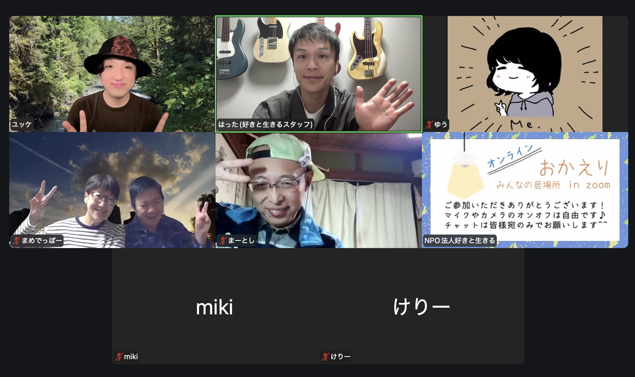 ※オンラインおかえりは、セキュリティの関係で、こちらの判断により入室許可できない場合がございますので、あらかじめご了承ください。(ひらがなのみを使った名前にしていただけると嬉しいです!)